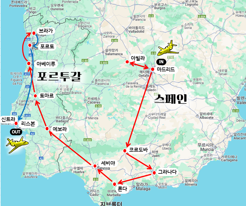 ✔ 스페인/포르투갈 (중부유럽/서유럽 기준): 한국보다 -7~8시간 (스페인 중부: -7시간, 포르투갈: -8시간)
