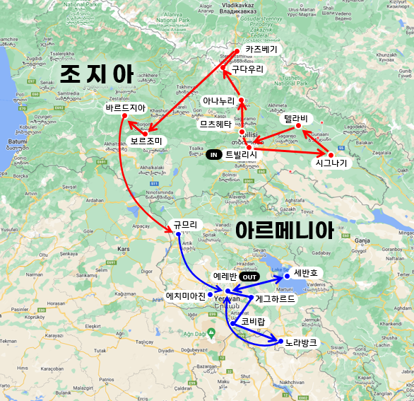 ㅇ 조지아·아르메니아는 한국보다 5시간 느립니다.